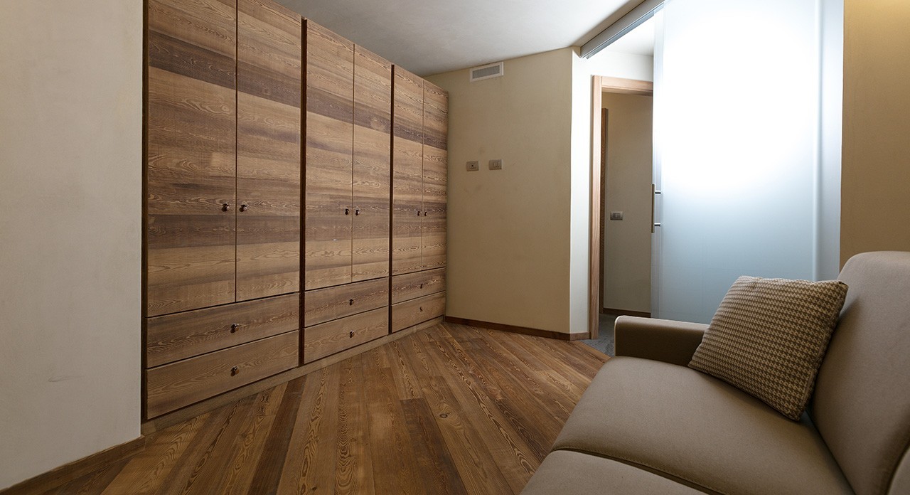 L’appartamento Fiocco di Neve è dotato di una terrazza esterna in comune con vista panoramica su Bormio.